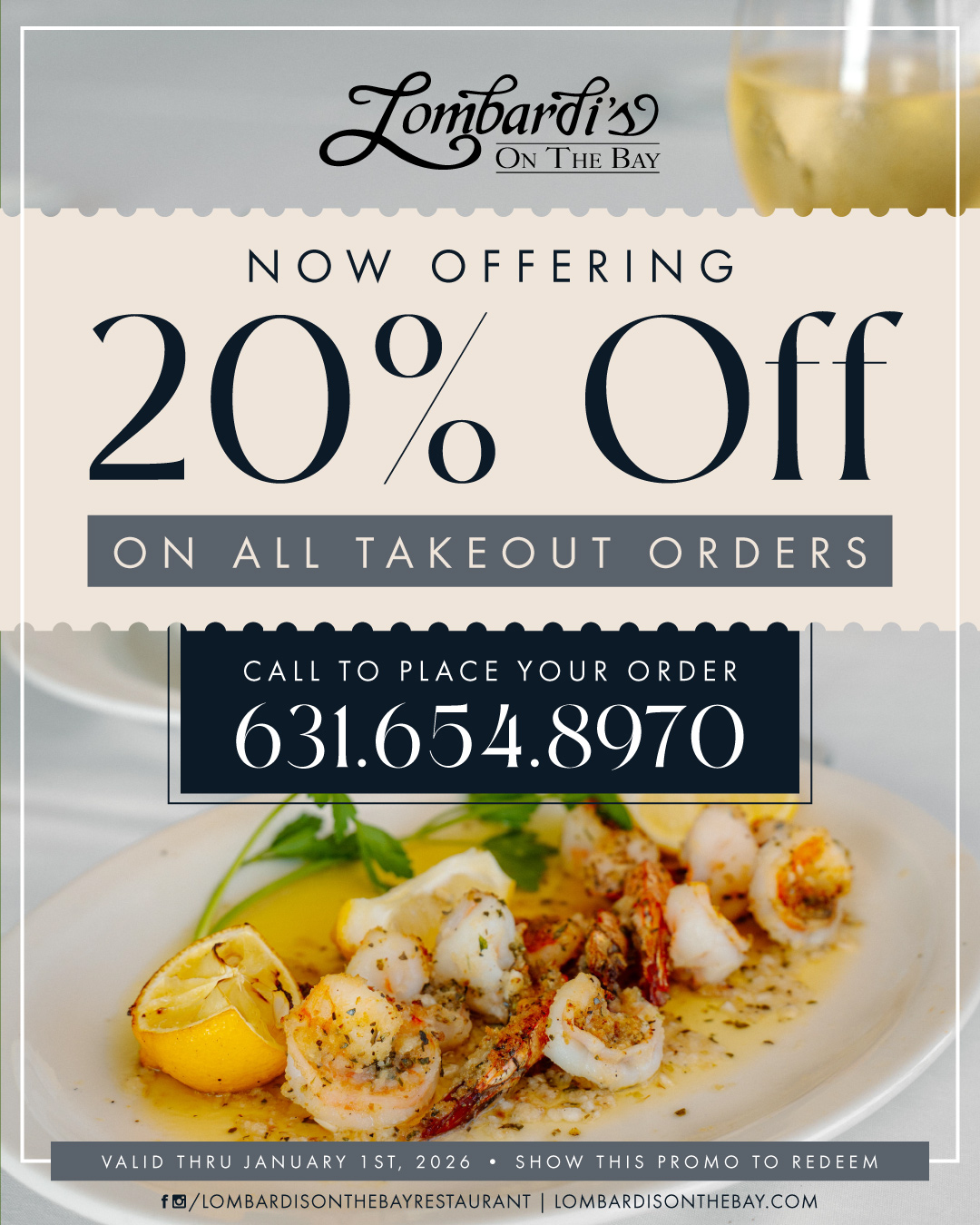 Cited by the New York Times as a location where “The food is as good as the views,” experience the Lombardi Family tradition of fine cuisine at Lombardi’s on the Bay. A property of Lombardi Caterers, a renowned entity in Long Island Hospitality,Lombardi’s on the Bay continues Lombardi’s 40-year-tradition of quality cuisine and service. With breathtaking views of the Great South Bay, Lombardi’s on the Bay offers a legendary elegance exclusive to this venue. Whether dining in our restaurant, enjoying a catered event in our banquet hall, or having your dream wedding where you are the only bride,Lombardi’s on the Bay is your choice for perfection and class.