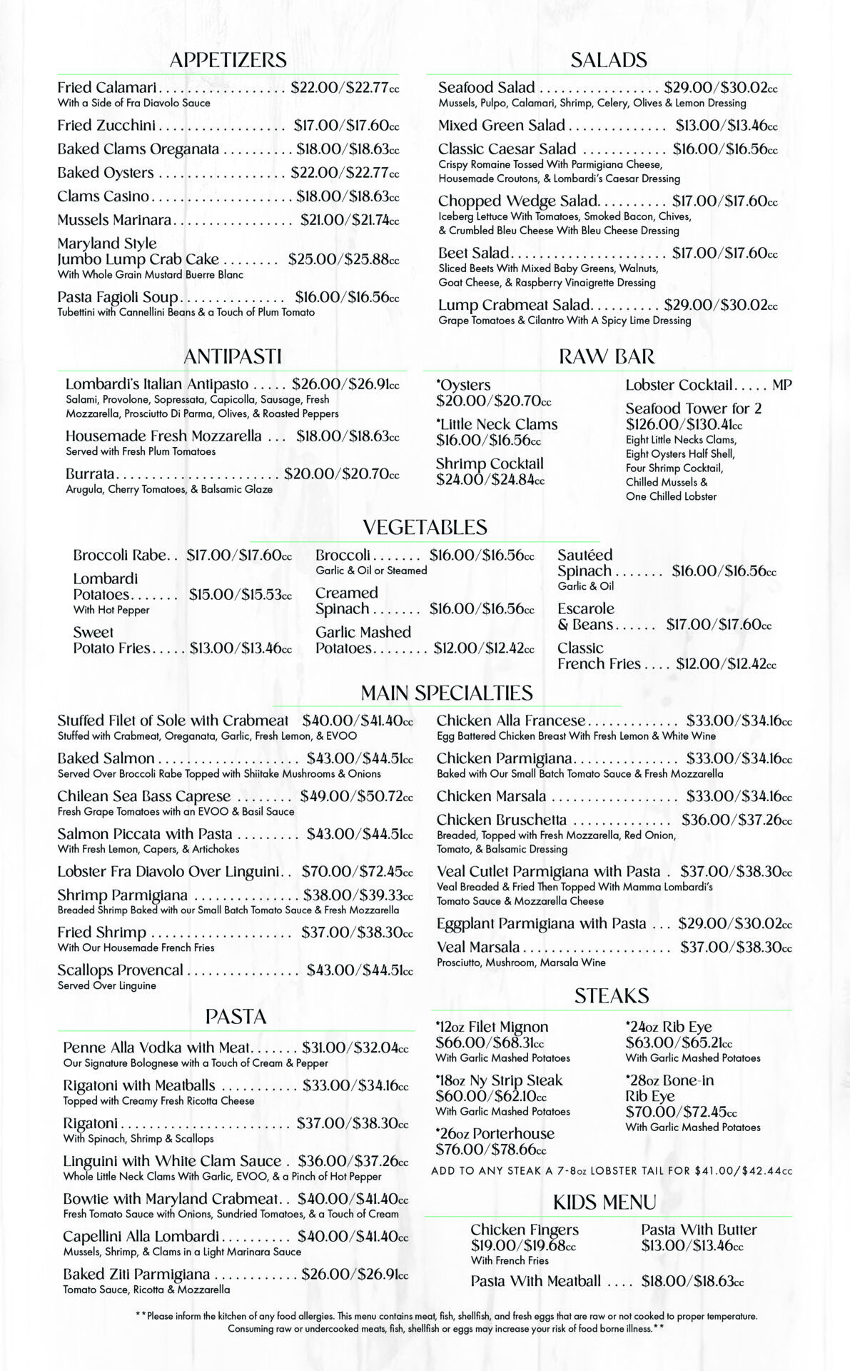 Please note: Gratuity is not included. Gift cards and coupons are not accepted with this menu.