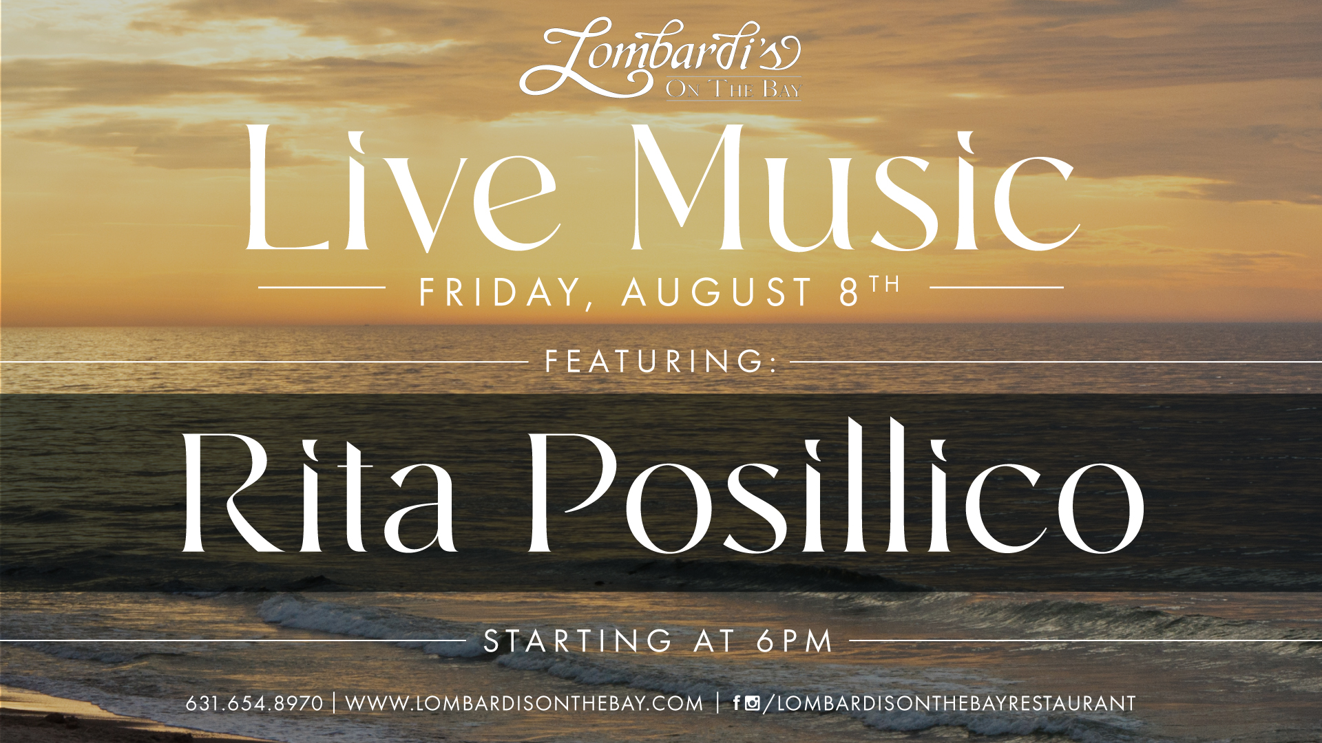 Kick off your Friday night with the talented Rita Posillico, performing live by the bay. From acoustic favorites to soulful originals, she sets the perfect tone for your evening. Music begins at 6 pm.